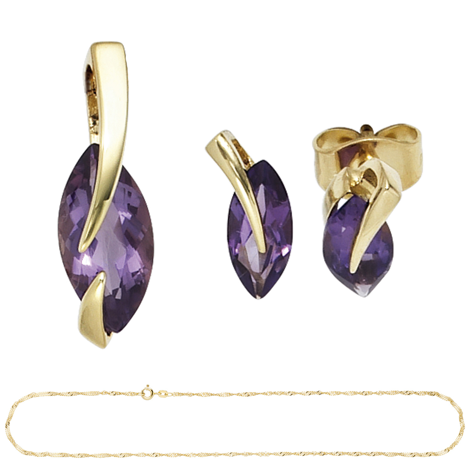 Schmuck-Set 585 Gold Gelbgold 3 Amethyste lila violett Ohrringe und Kette 42 cm Schmuck-Set 585 Gold Gelbgold 3 Amethyste lila violett Ohrringe und Kette 42 cm Schmuck-Set 585 Gold Gelbgold 3 Amethyste lila violett Ohrringe und Kette 42 cm Schmuck-Set 585 Gold Gelbgold 3 Amethyste lila violett Ohrringe und Kette 42 cm