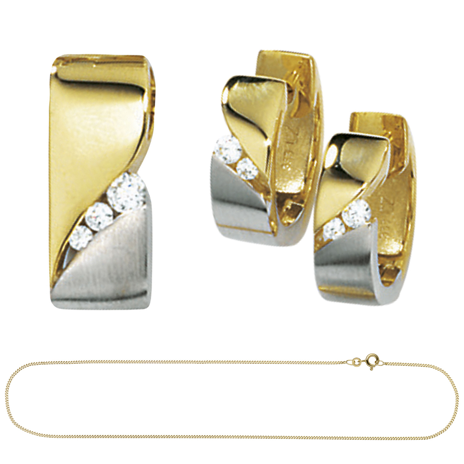 Schmuck-Set 333 Gold Gelbgold bicolor 7 Zirkonia Ohrringe und Kette 45 cm Schmuck-Set 333 Gold Gelbgold bicolor 7 Zirkonia Ohrringe und Kette 45 cm Schmuck-Set 333 Gold Gelbgold bicolor 7 Zirkonia Ohrringe und Kette 45 cm Schmuck-Set 333 Gold Gelbgold bicolor 7 Zirkonia Ohrringe und Kette 45 cm