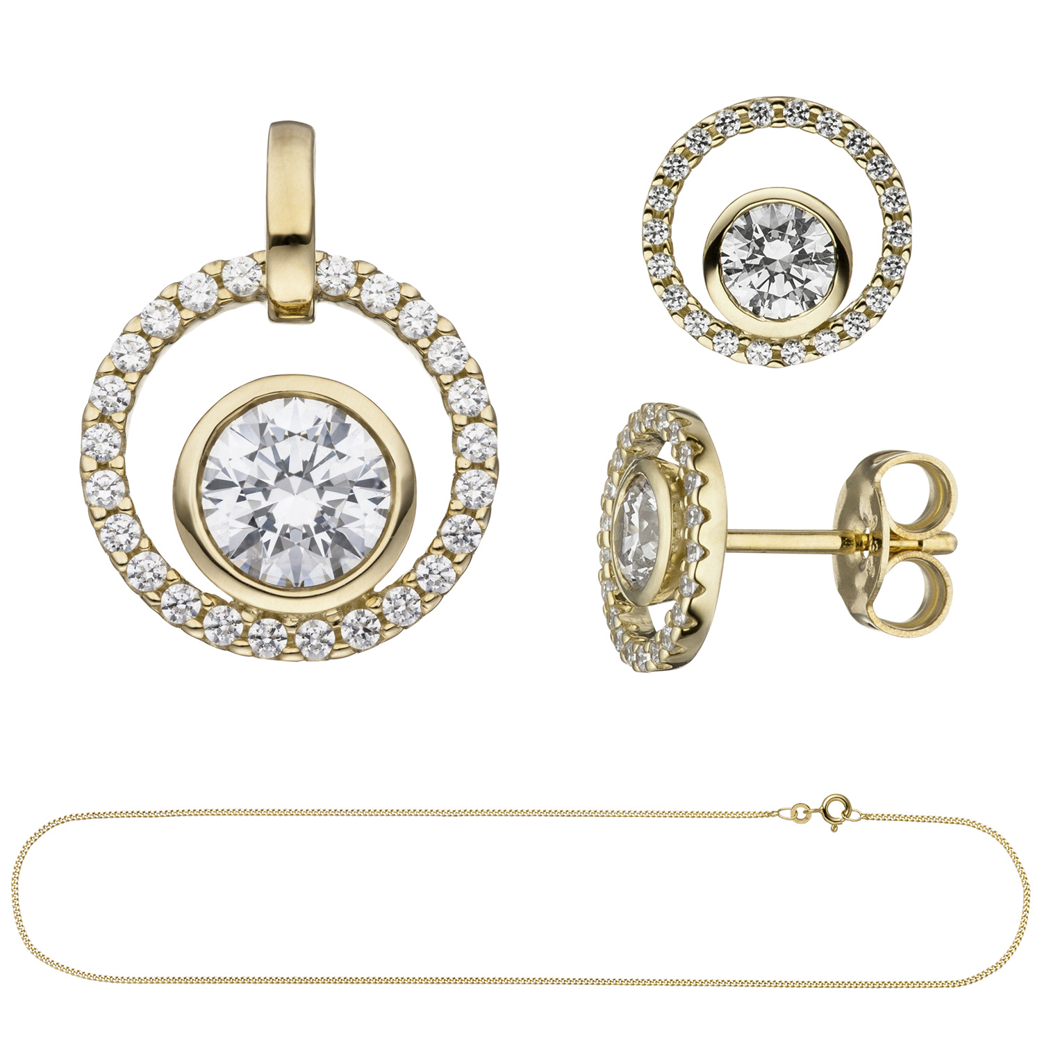 Schmuck-Set 333 Gold Gelbgold mit Zirkonia Ohrstecker und Kette 42 cm