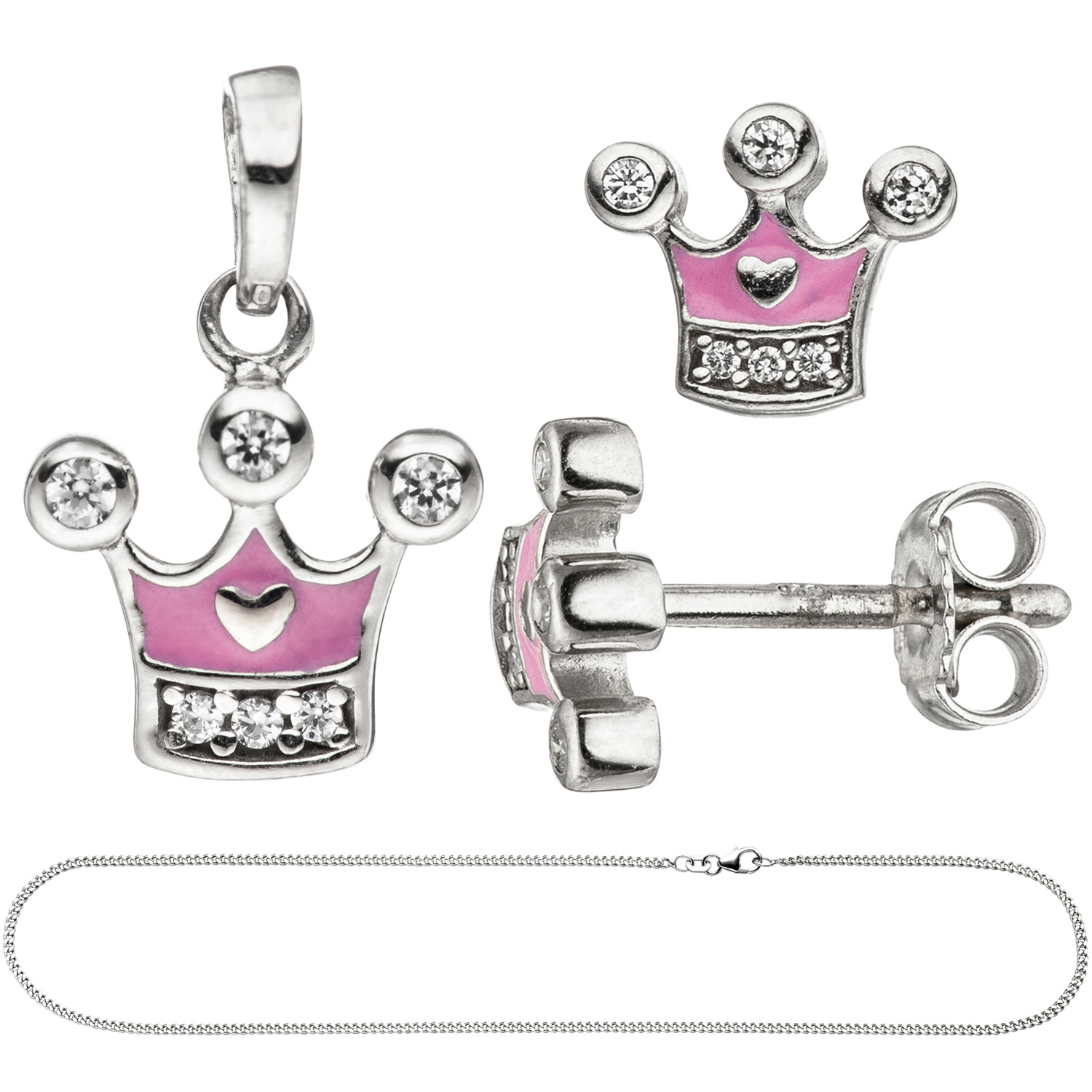 Kinder Mädchen Schmuck-Set Krone pink rosa 925 Silber Zirkonia mit Kette 38 cm Kinder Mädchen Schmuck-Set Krone pink rosa 925 Silber Zirkonia mit Kette 38 cm Kinder Mädchen Schmuck-Set Krone pink rosa 925 Silber Zirkonia mit Kette 38 cm Kinder Mädchen Schmuck-Set Krone pink rosa 925 Silber Zirkonia mit Kette 38 cm