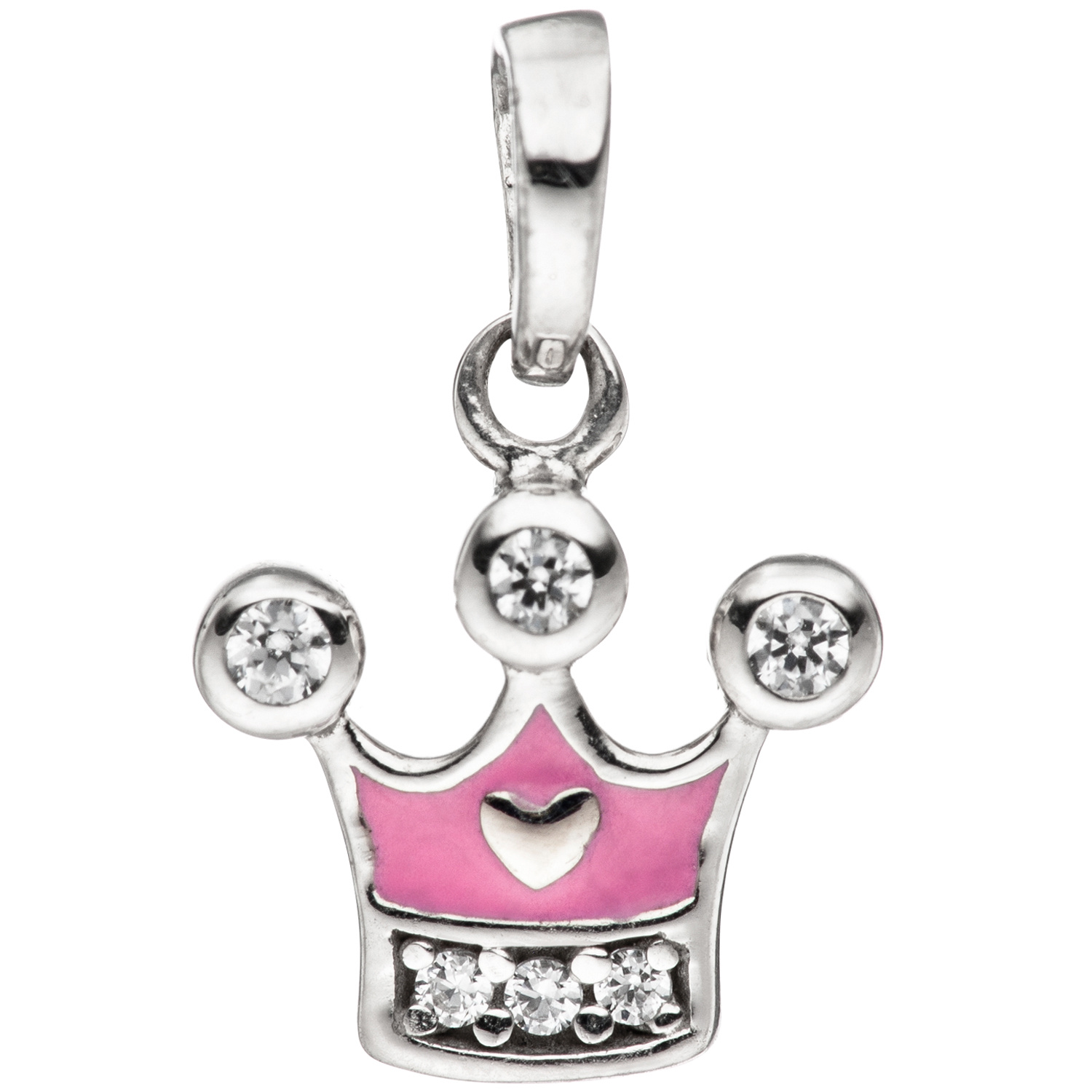 Schmuck-Set, bestehend aus: Kinder-Anhänger "Krone" aus 925 Sterlingsilber, rhodiniert, mit 6 Zirkonia und rosafarbener Lackeinlage, Höhe ca. 10,8 mm, Breite ca. 9,7 mm, Tiefe ca. 2,6 mm, Innenmaße der Öse ca. 3,4 mm x 2,7 mm, Gewicht ca. 0,9 g * 1 Paar Kinder-Ohrstecker "Krone" aus 925 Sterlingsilber, rhodiniert, mit 12 Zirkonia und rosafarbener Lackeinlage, Höhe ca. 6,7 mm, Breite ca. 8 mm, Gewicht ca. 1,2 g * Panzerkette aus 925 Sterlingsilber, rhodiniert, mit Karabinerverschluss, Länge ca. 38 cm, Kettenstärke ca. 1,7 mm x 0,8 mm, Gewicht ca. 2,9 g * Bitte beachten Sie die Maße! Auf dem Foto können die Artikel größer wirken *