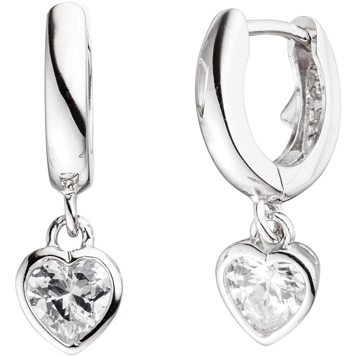 Schmuck-Set, bestehend aus: Kinder-Anhänger "Herz" aus 925 Sterlingsilber, rhodiniert, mit einem Zirkonia, Höhe ca. 8,9 mm, Breite ca. 7,4 mm, Tiefe ca. 3,7 mm, Innenmaße der Öse ca. 4,1 mm x 2,6 mm, Gewicht ca. 0,9 g * 1 Paar Kinder-Creolen mit Klappmechanik "Herz" aus 925 Sterlingsilber, rhodiniert, mit 2 Zirkonia, Außendurchmesser der Creolen ca. 11,8 mm, Höhe ca. 19,5 mm, Breite ca. 6,2 mm, Gewicht ca. 2,7 g * Panzerkette aus 925 Sterlingsilber, rhodiniert, mit Karabinerverschluss, Länge ca. 42 cm, Kettenstärke ca. 1,7 mm x 0,8 mm, Gewicht ca. 3,3 g * Bitte beachten Sie die Maße! Auf dem Foto können die Artikel größer wirken *