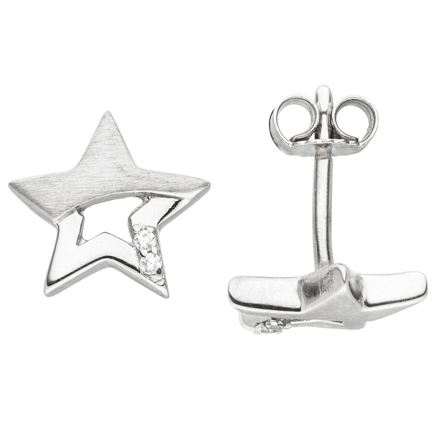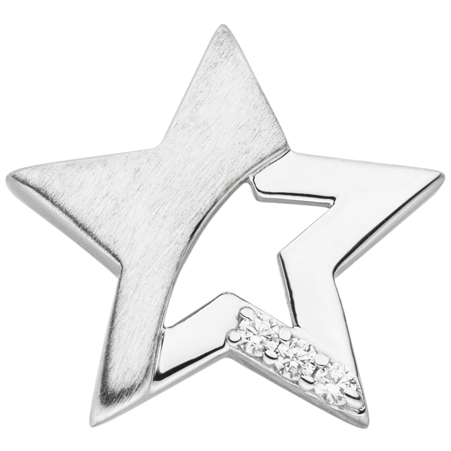 Schmuck-Set, bestehend aus: Anhänger "Stern" aus 925 Sterlingsilber, rhodiniert und teilmattiert, mit 3 Zirkonia, Höhe ca. 15 mm, Breite ca. 15,7 mm, Tiefe ca. 2,4 mm, Innenmaße der Öse ca. 4,3 mm x 2,7 mm, Gewicht ca. 1,2 g * 1 Paar Ohrstecker "Stern" aus 925 Sterlingsilber, rhodiniert und teilmattiert, mit 4 Zirkonia, Höhe ca. 9,7 mm, Breite ca. 10 mm, Gewicht ca. 1,1 g * Panzerkette aus 925 Sterlingsilber, rhodiniert, mit Karabinerverschluss, Länge ca. 38 cm, Kettenstärke ca. 1,7 mm x 0,8 mm, Gewicht ca. 2,9 g * Bitte beachten Sie die Maße! Auf dem Foto können die Artikel größer wirken *