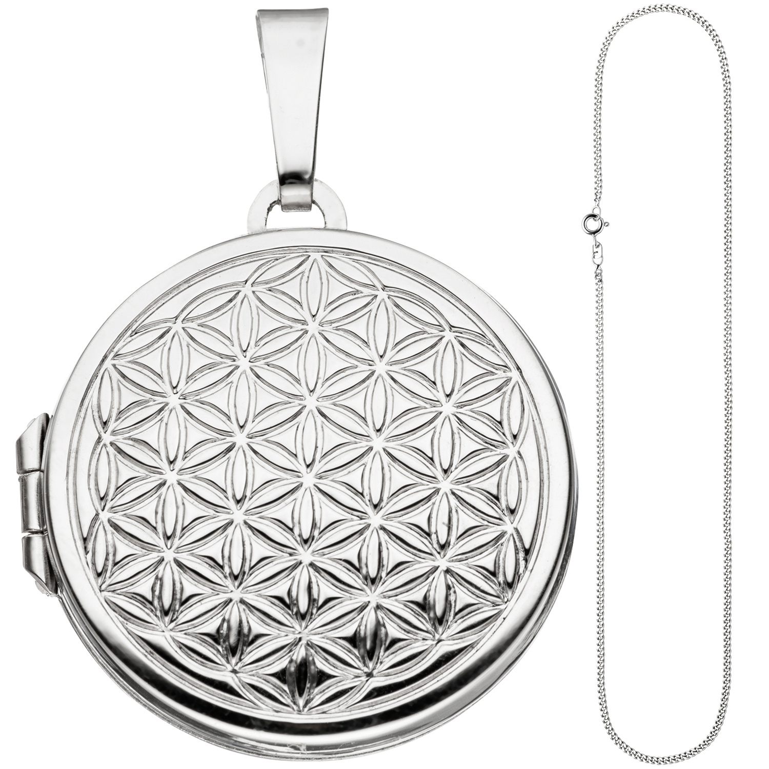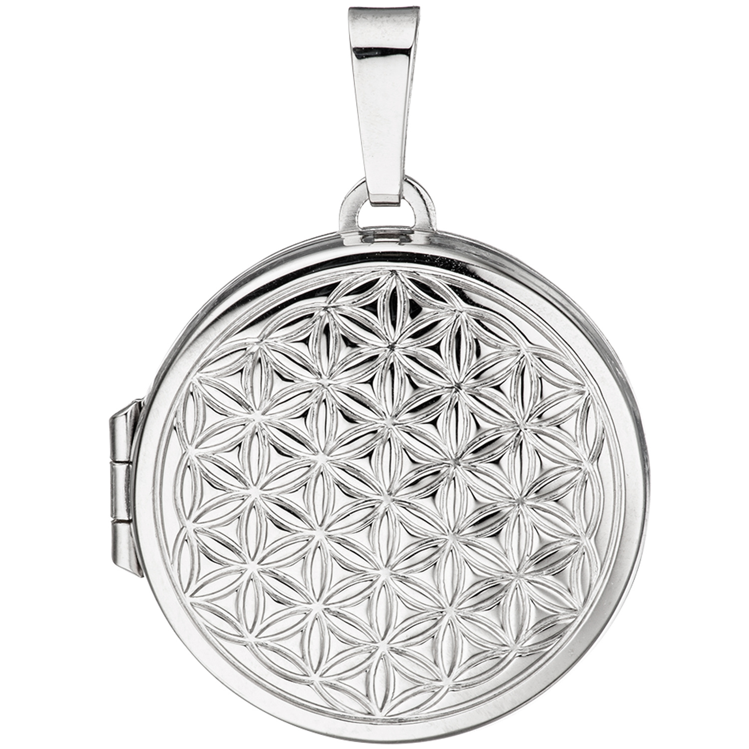 Medaillon Blume des Lebens rund Anhänger zum Öffnen 925 Silber mit Kette 50 cm