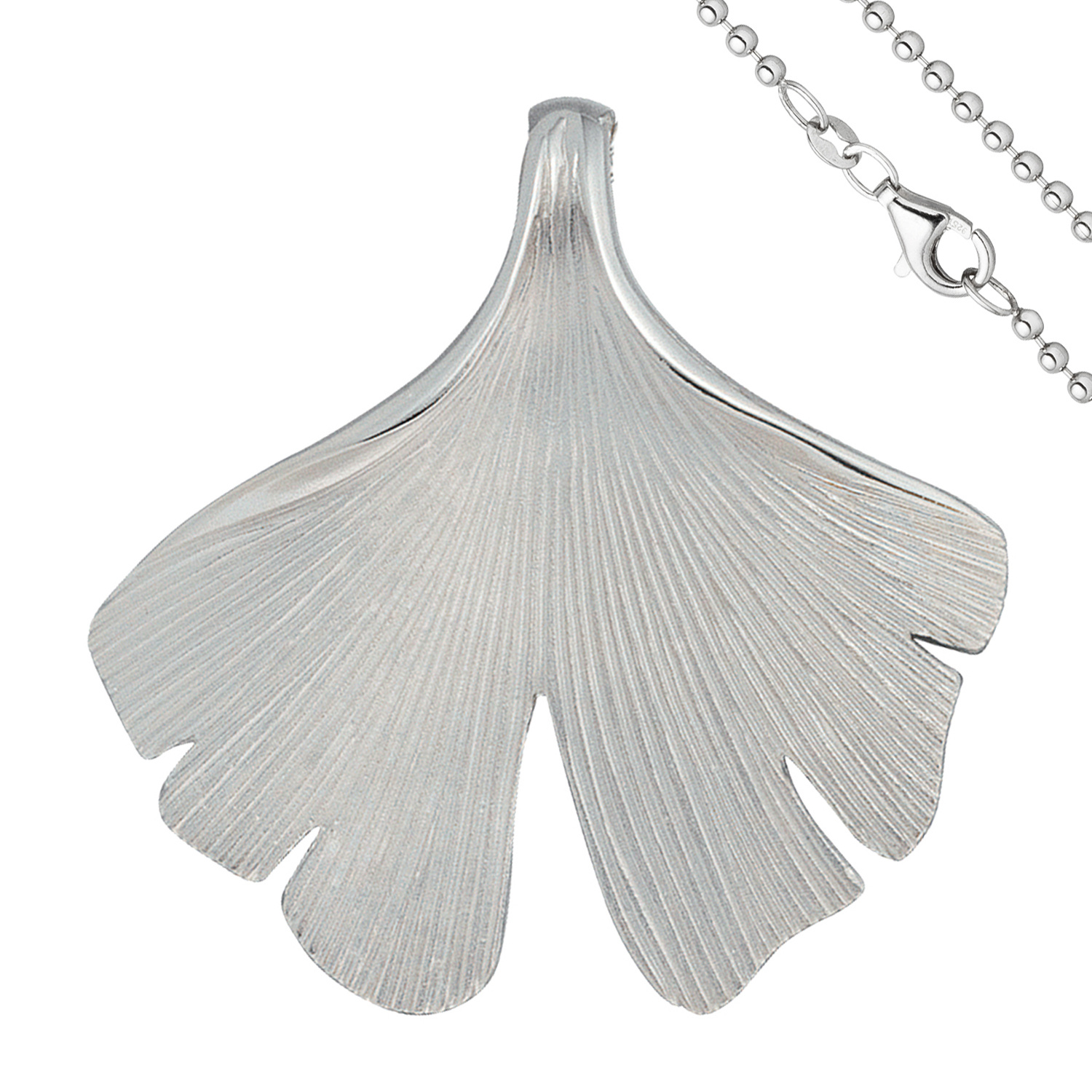 Anhänger Ginko Ginkgo 925 Sterling Silber matt mit Kette 45 cm