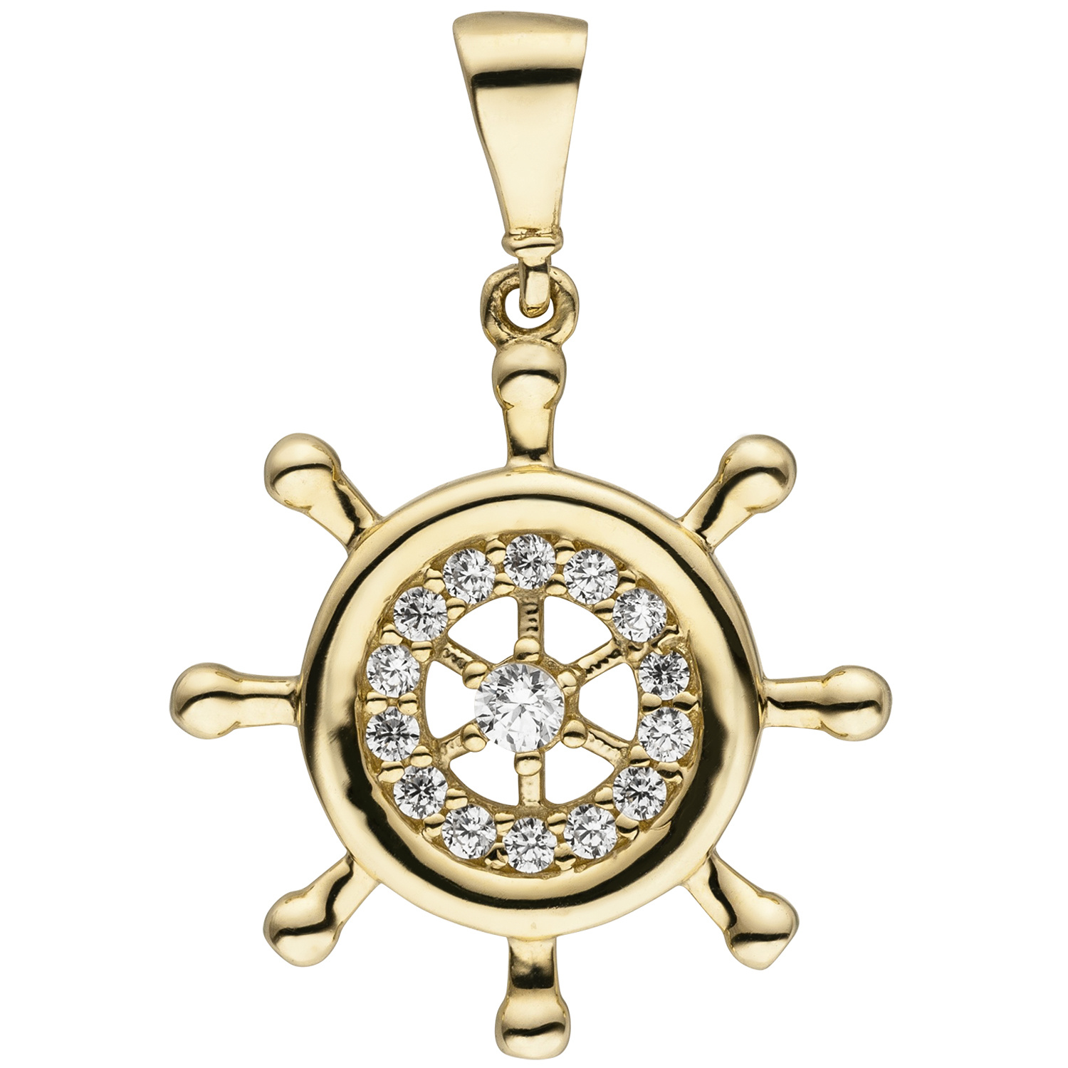 Anhänger Steuer Steuerrad 333 Gold Gelbgold 15 Zirkonia Goldanhänger